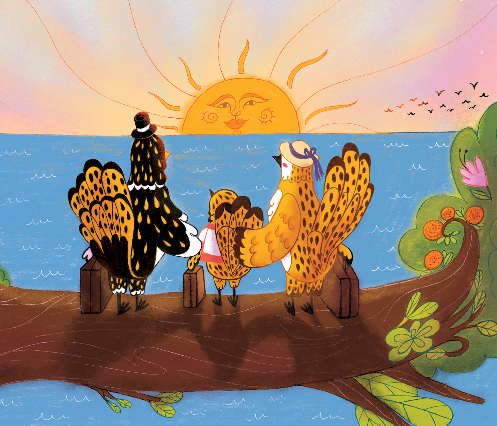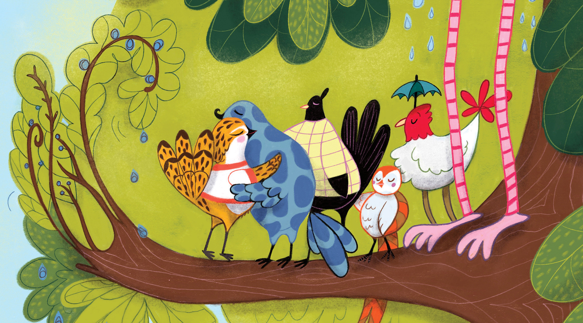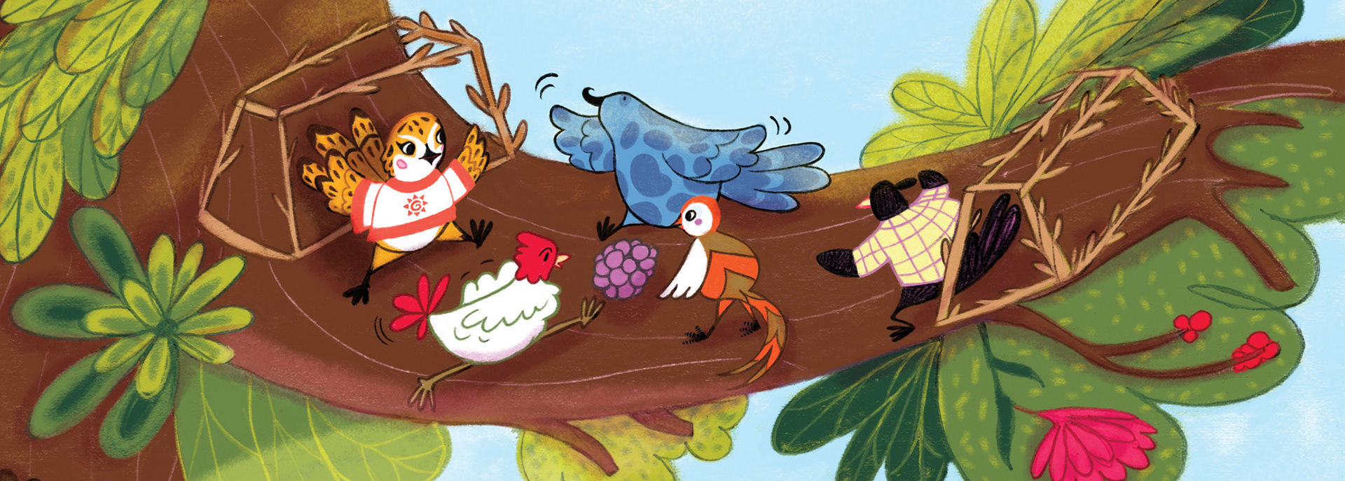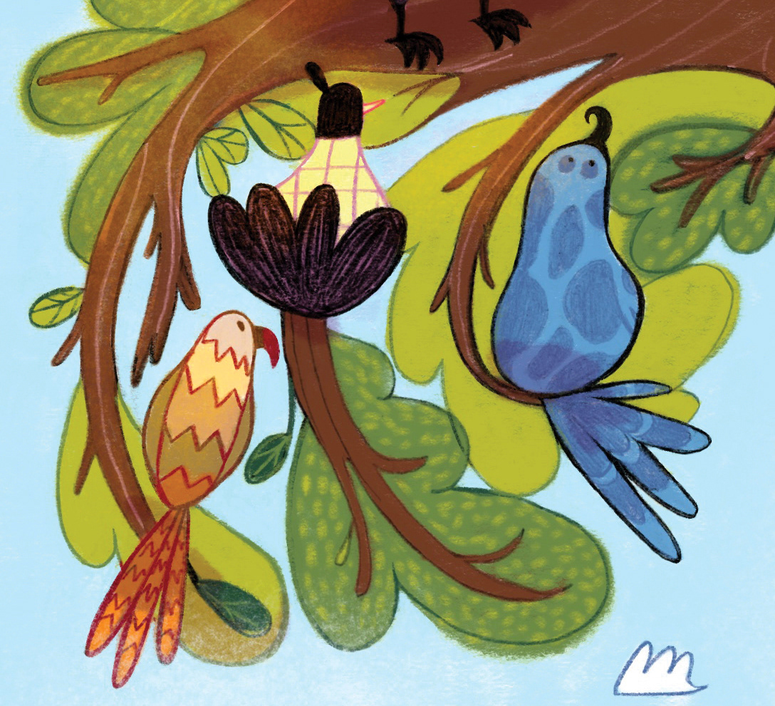 Libro-álbum para Latinbooks sobre un pajarito que se llama Milo que debe mudarse con sus padres, cambiar de árbol, de paisajes y de escuela. Dibujado en lápiz a mano y coloreado digitalmente con Procreate. Escrito por Luciana Jazmín Coronado.